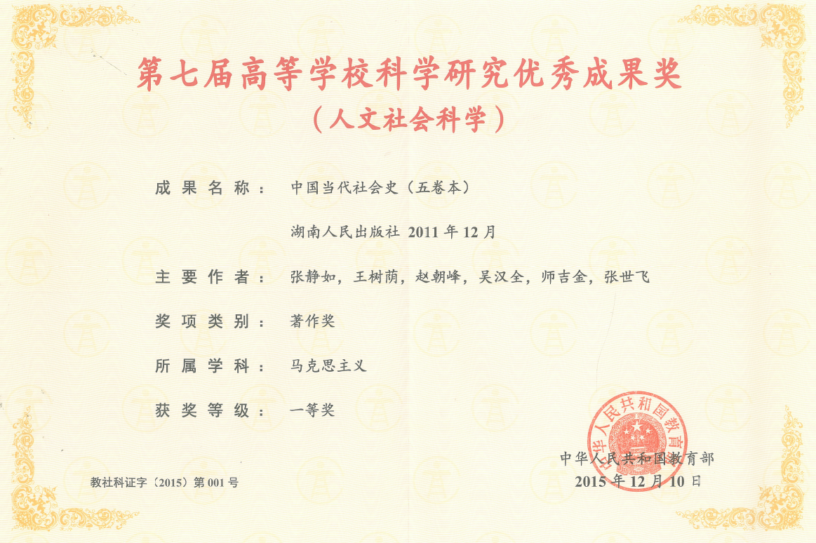 社会史研究是张静如先生诸多治学成就的重要方面,其先后主编了《北洋军阀统治时期中国社会之变迁》、《国民政府统治时期中国社会之变迁》、《中国现代社会史》(两卷本)、《中国当代社会史》(五卷本)。其中,《中国当代社会史》2015年获教育部第七届高等公司科学研究优秀成果奖一等奖。